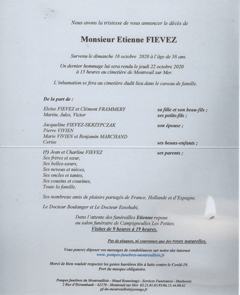 Toutes mes pensées à sa famille pour qui cette épreuve est difficile mais tout particulièrement à Jacqueline qui a toujours été là pour Etienne.