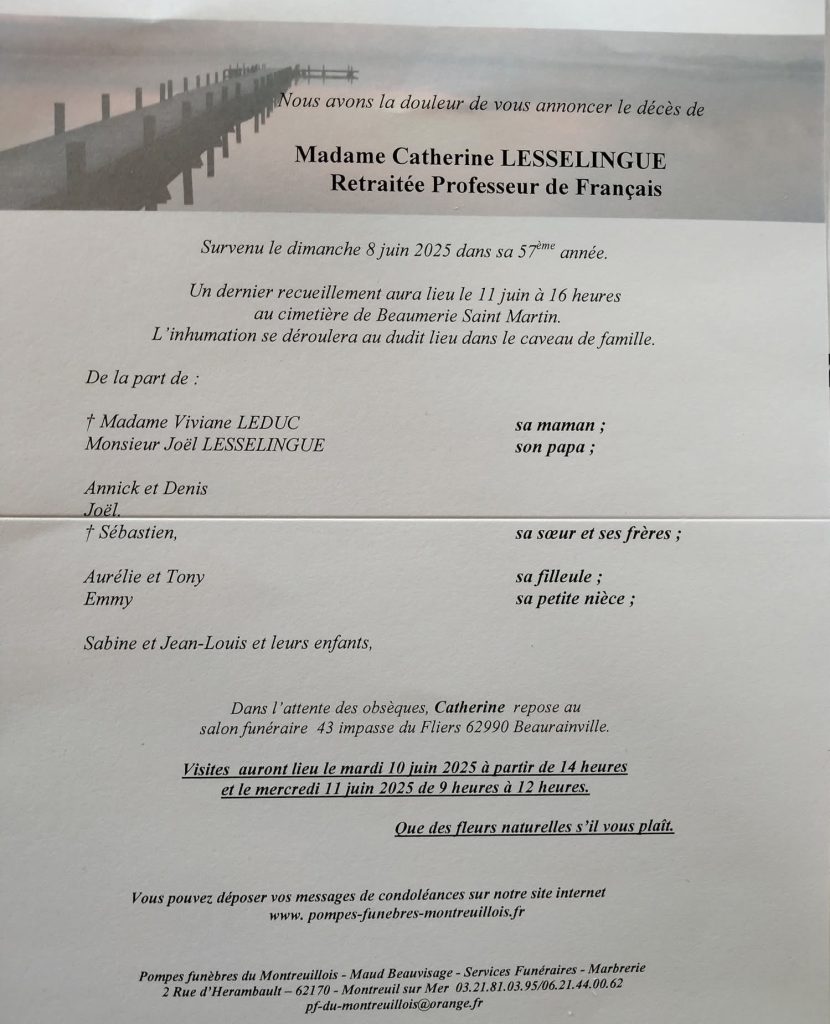 C’est avec une grande tristesse que j’ai appris le décès de Catherine. Elle fut une professeure de français exceptionnelle, passionnée et bienveillante, qui a marqué mon passage au collège d’une empreinte indélébile. Grâce à elle, j’ai découvert l’amour de la langue et de la littérature, mais aussi le plaisir d’apprendre.