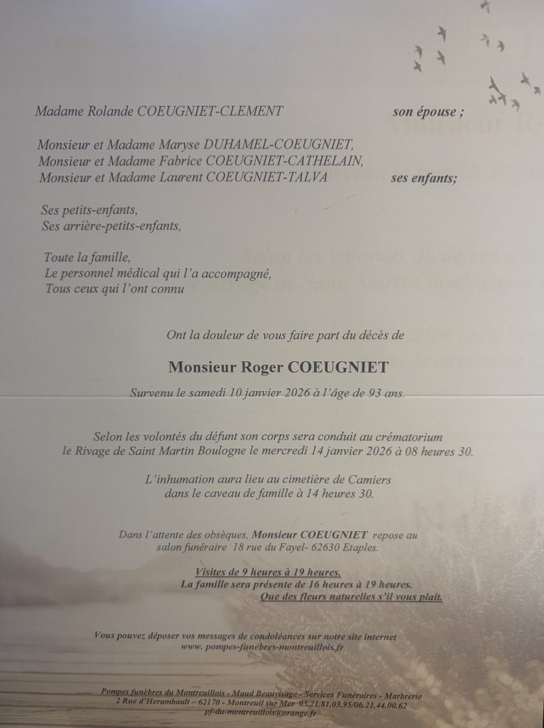 Martine Lenglet s’associe a votre peine et presente ses sincères condoleances à Rolande et sa famille, bon courage, mes pensees vous accompagnent