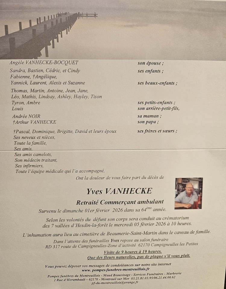 Nous vous présentons nos sincères condoléances à toute la famille en cette triste circonstance toute nos chaleureuses pensées vous accompagnent en cette douloureuse épreuve je garderais un bon souvenir de Yves et courage Angèle. Thérèse franck